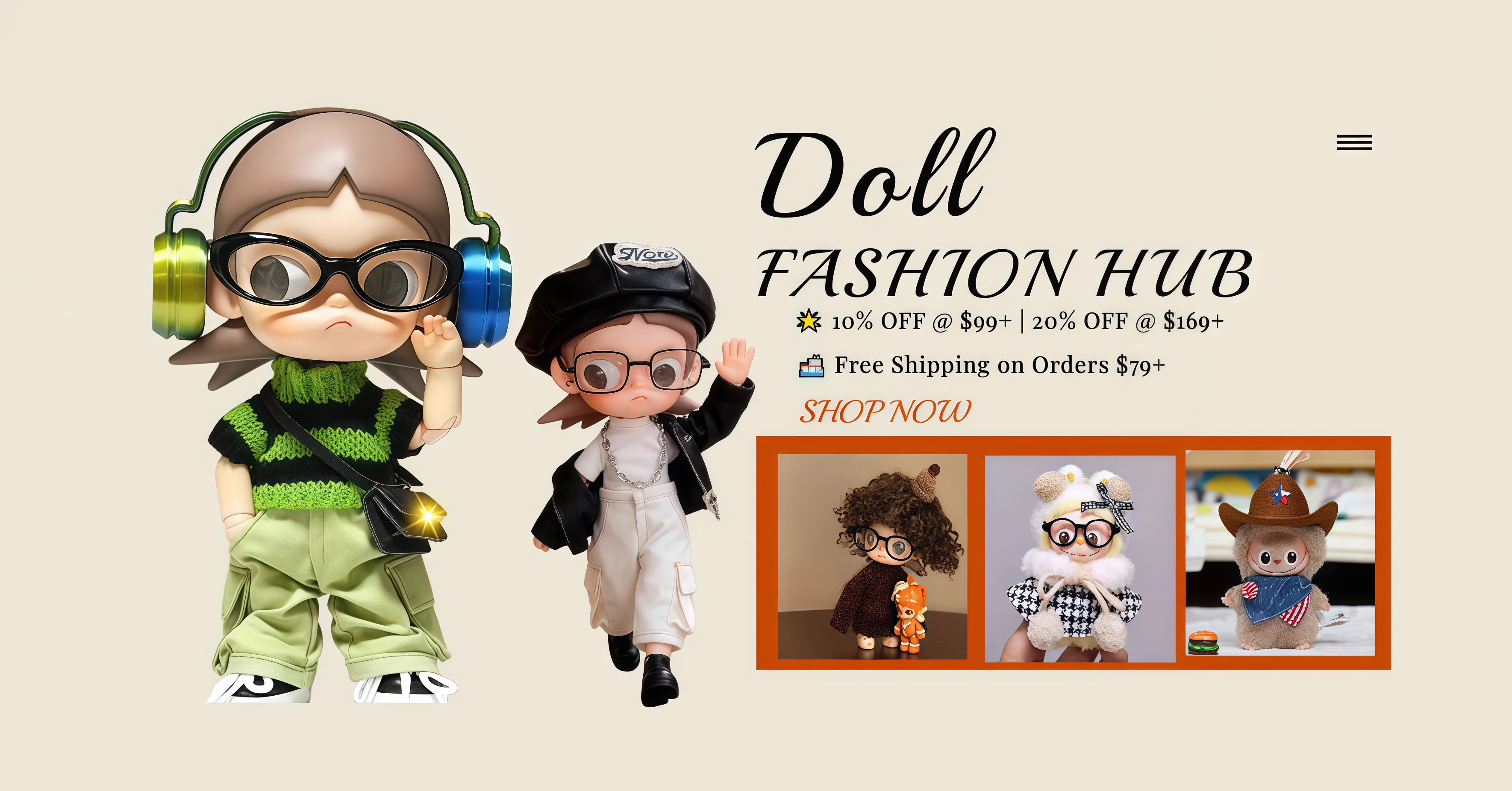 Zsiga Cool Style 3-Piece Doll Outfit: Brown Knitted Sweater + Glasses + Hat for Zsiga 1/8 Articulated Doll Fashion Accessories