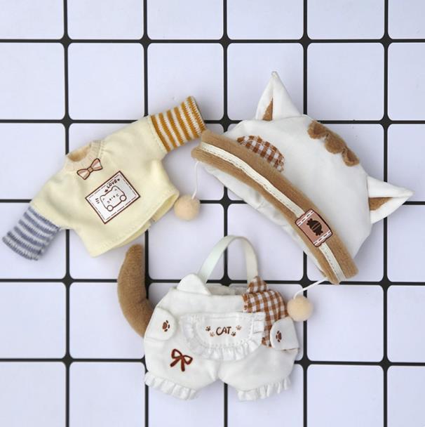 Cute Cat Outfit for OB11 Dolls - 1/12 BJD Body9 Doll Clothes 3-Piece Set